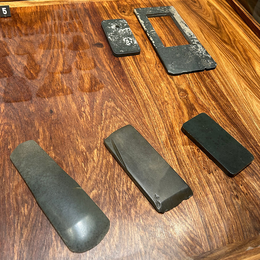 Evidence features five fields of man-made objects on the floor: Stone Age tools, Song dynasty (960-1279 CE) porcelain tea spouts, ceramic cannon balls from the same era, broken sculptures from Ai's studio (destroyed by Chinese officials) and Lego blocks. It's fascinating to see the ancient items as everyday things that once weren't special at all. And an electrifying touch is the shape of an iPhone carved out of a Neolithic era jade axe, connecting the whole of human history.